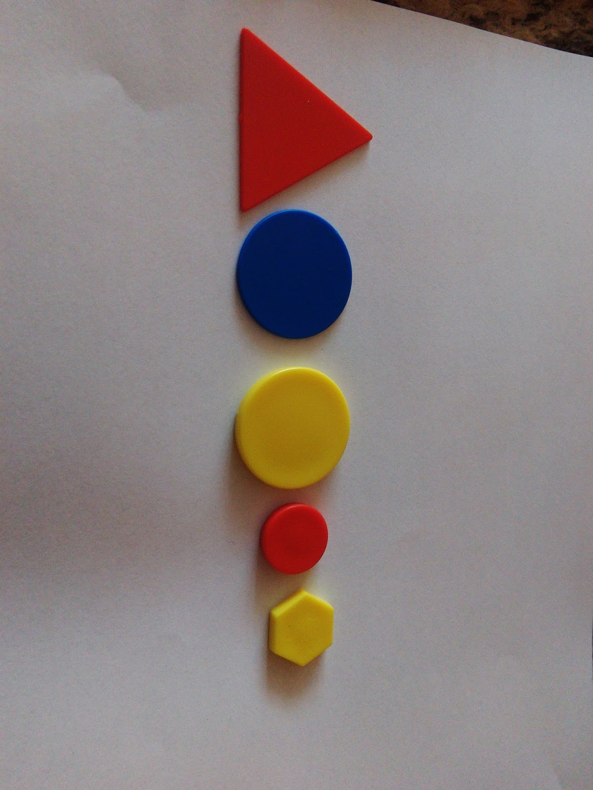 ...nie ma powodów do zmartwień. Do najprostszych zabaw użyć można plastikowych nakrętek, kolorowych klamerek, kawałków materiału, wstążki, papieru, kolorowych patyczków po lodach lub zwyczajnie rysować. Do tych nieco bardziej skomplikowanych poszukiwać należy przedmiotów różniących się jakimiś cechami. Jest to trudniejsze. Dobrym rozwiązaniem są np. kolorowe słomki, które możemy pociąć na dwie długości. Można również wycinać figury z papieru lub pianki. Ja zdecydowałam się na plastikowe zestawy, gdyż ich zastosowanie jest szerokie, a używane często nie podlegają zniszczeniu i nie muszę martwić się, tylko zawsze mam gotowy komplet pod ręką :)